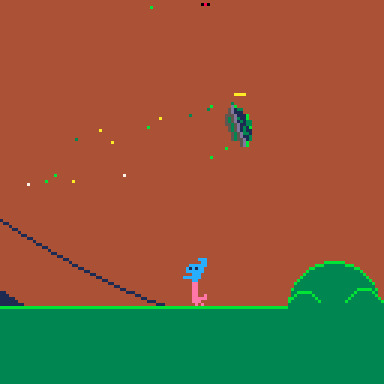Big things! :D procedural planet creation (still very same-y at this point) slight variations in bush types slight variations in blue hill drawing variations in heavenly bodies collect 3 creatures to...